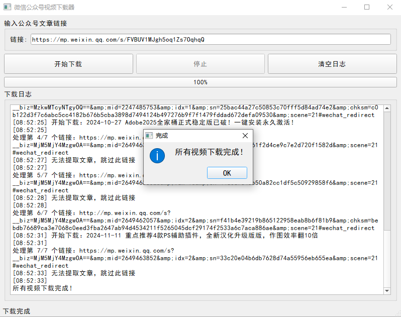 软件界面简洁,顶部可直接输入含视频文章的链接。