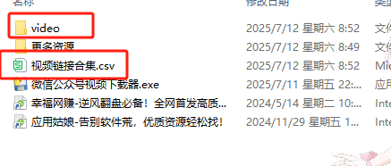下载视频保存在 video文件夹,同时,还有视频链接保存在表格内,方便随时查看;