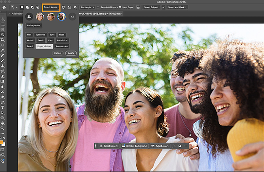 位于移除工具中的查找干扰功能,能自动检测并去除图像里的电线、线缆和背景人物,还会自动选择填充方式。