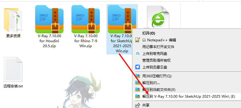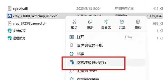 2、打开解压后的文件夹,右键以管理员身份运行 vray_71000_sketchup_win.exe 开始安装