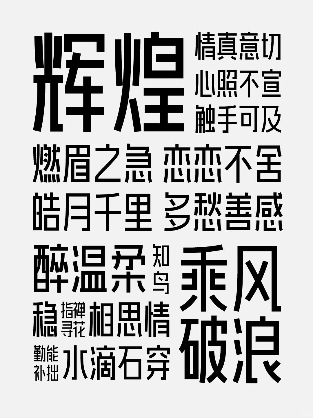 它笔画统一,设计感爆棚;结构匀称,排版整齐清晰;布白有序,优雅气质尽显。风格轻盈现代,用在唱片封面、书籍标题上,瞬间让作品纤细优美、格调飞升。