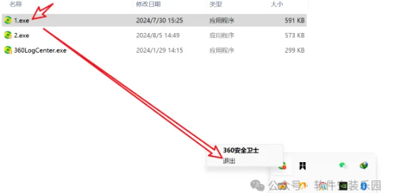 进入文件夹能看到三个exe文件,先双击“1.exe”,几秒后在电脑右下角右键图标并退出。