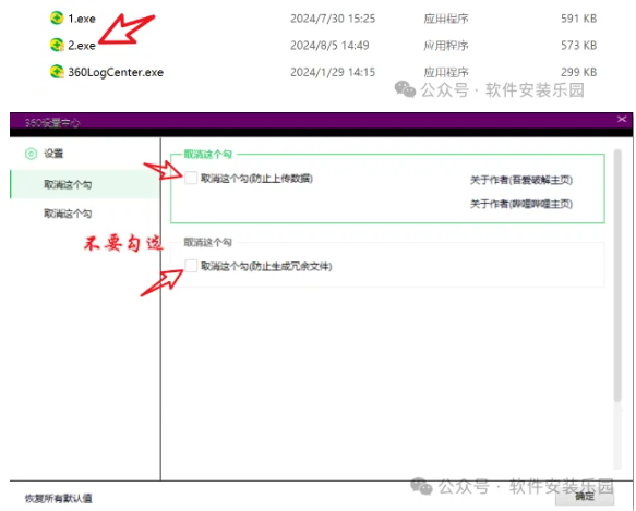 接着双击“2.exe”,在打开的界面里去掉图示的勾选,然后点击“确定”。