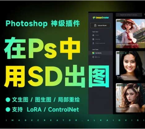 ps AI绘图:Photoshop插件Imagecreator代替Ps创成式Ai绘图?Imagecreator是将Stable Diffusion生态中的文生图、图生图、局部重绘等功能引入Photoshop中,支持灵活调用多种大模型、Lora模型和ControlNet插件,让我们可以在Ps中以使用Stable Diffusion WebUI的方式完成AI出图,喜欢的朋友,可以安装体验下~