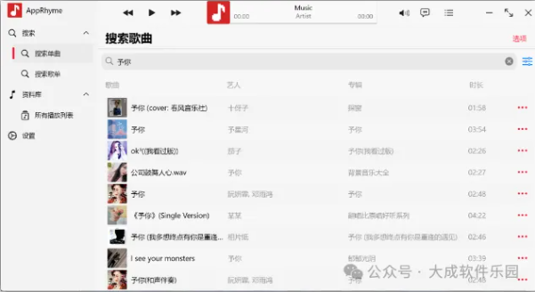 软件虽无推荐列表,但凭借强大的搜索功能,只需输入歌曲名,就能迅速找到您心仪的歌曲。