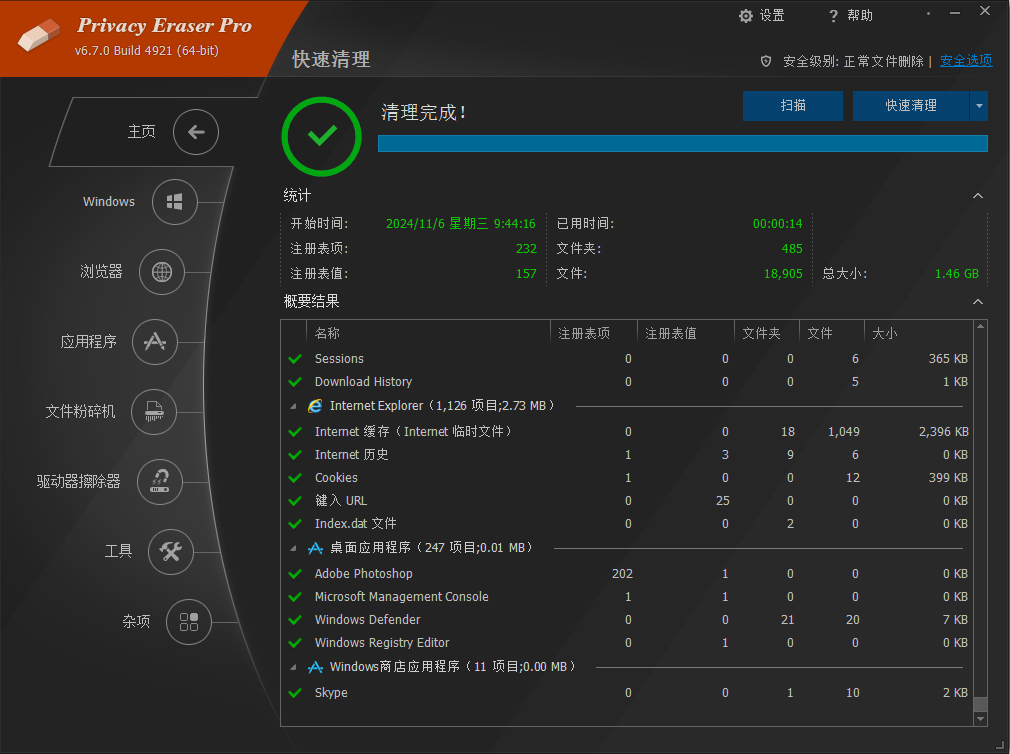 在我看来,Privacy Eraser 可不只是一个普通的清理工具。它全方位地涵盖了从消除网络活动痕迹到清理系统垃圾的各个环节,既保障了您的隐私安全,又让电脑运行得更加迅速和安全。此外,它还有许多隐藏的实用功能等着您去挖掘。