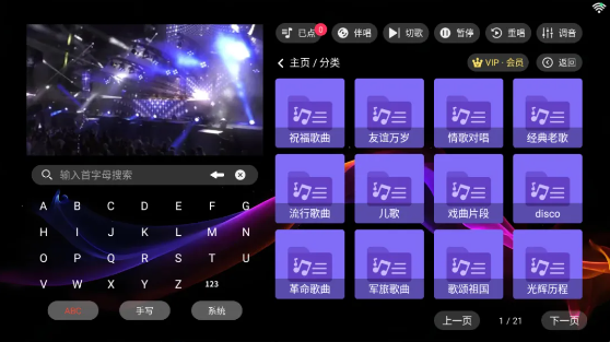 点歌的操作方式更是多样且便捷。除了常见的按歌手或者分类点歌之外,还支持输入首字母搜索以及手写输入关键字搜索。