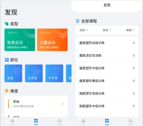 这款 App 里的健身动作那叫一个丰富多样,涵盖了全身各个部位。不管你是想增强心肺功能的有氧运动,还是塑造肌肉线条的力量训练,亦或是处于不同难度等级的训练,它都能满足你的需求。无论你是初入健身领域的小白,还是经验丰富的老司机,都能在这里找到专属的训练计划。