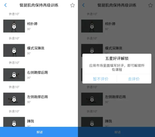 部分训练计划需要解锁,解锁方式就是在应用市场给个五星好评。说实话,这样出色的软件,值得我们给出好评!