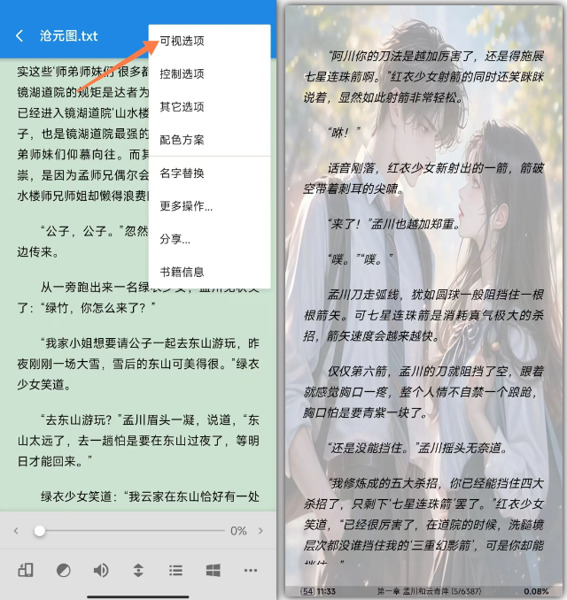 它支持的格式超级多,像 html、epub、pdf、djvu、mobi、azw/azw3、prc、docx、odt、rtf、umd、fb2、chm、cbr、cbz、webp、rar、zip 等等,比 Readingo 支持的格式还丰富。