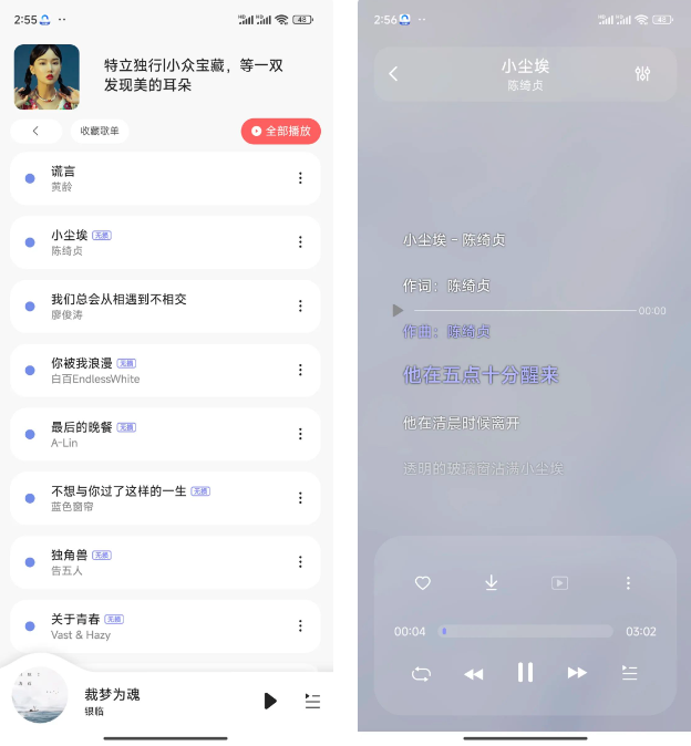 它的功能强大到超乎想象!能同步歌单,收藏歌曲、评论、试听、看歌词,一应俱全。