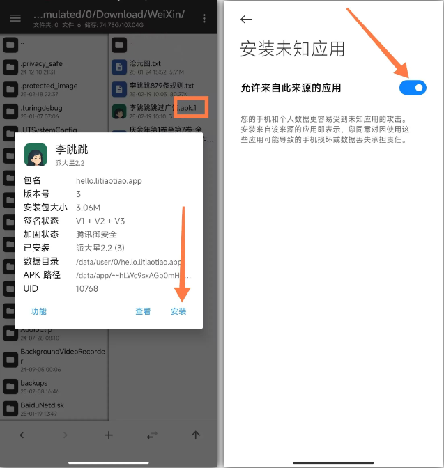 在安装包管理上,如果是通过微信发送的 APK 和 XAPK 等格式的安装包,后面通常会带多个 “.1”。一般得把 “.1” 删掉才能安装,可在 MT 管理器里能直接安装。不过安装时得授予 “允许来自此来源的应用” 权限。授权之后,使用 MT 管理器就能直接安装 APK、APK.1、XAPK 等格式啦。