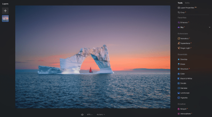 Luminar Neo 具备一套全面的工具与功能,涵盖高级图像调整工具、合成工具、画笔和滤镜等。这些工具让用户能进行精细调整、添加创意效果及个性化设置,成就独特艺术作品。软件还拥有灵活的创意工作流程,通过图层工作流,用户可探索创造力、组合不同图像、添加文本和图形元素并个性化设置。此外,它支持智能对象识别技术,能快速识别并编辑照片中的主题和背景。