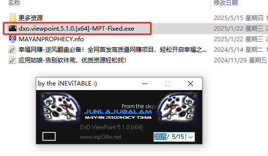 5、激活;双击运行【dxo.viewpoint.5.1.0.[x64]-MPT-Fixed.exe】,点击豹子头即可;