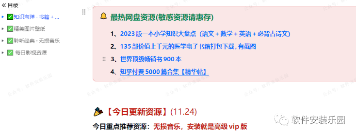 感谢大家一直以来对软件安装乐园的关注与支持,大成最近在整合资源,包括但不限于 安卓+电脑+ios,还有很多影视、付费课程、无损音乐、游戏集合、美女写真等,统统免费,每天都会打卡更新,点击进入:大成全资源在线文档(每天更新,欢迎下载和转存)。