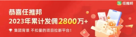 截止当前,任推邦2023年已发放佣金2800W+,集团背景不扣量的项目拉新平台!