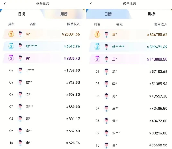 来看一下日&月收入排行TOP10大佬们的推广收益情况,如下图: