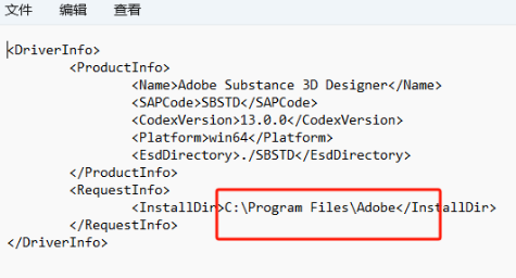 5、用记事本打开 driver.xml,里面的C:Program FilesAdobe修改成你要安装的目录即可