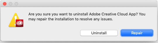 注意: 确保在运行卸载程序之前,已同步所有文件。未同步到 Creative Cloud 帐户的文件可能会丢失。