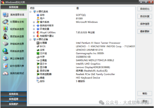 #软件介绍今天推荐的这款软件叫做:Windows优化大师,它是一款将系统检测、系统优化、系统清理和系统维护集于一身的软件。
