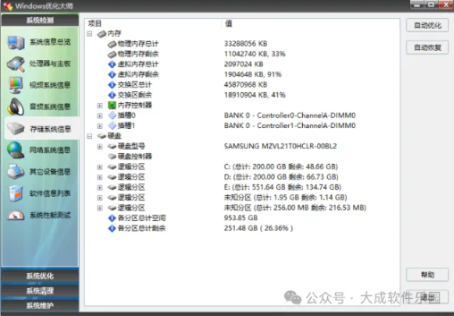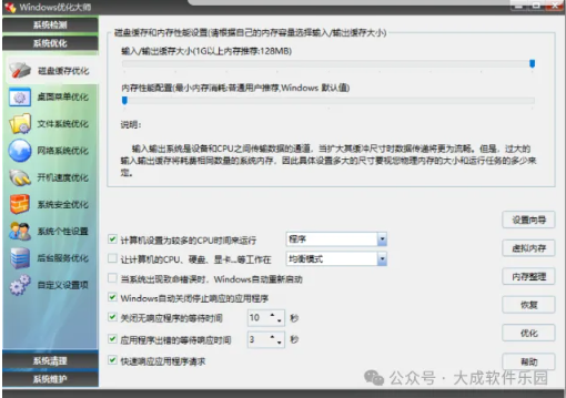 系统优化:系统优化的功能众多,包括磁盘优化、桌面菜单优化、开机速度优化、系统个性设置。